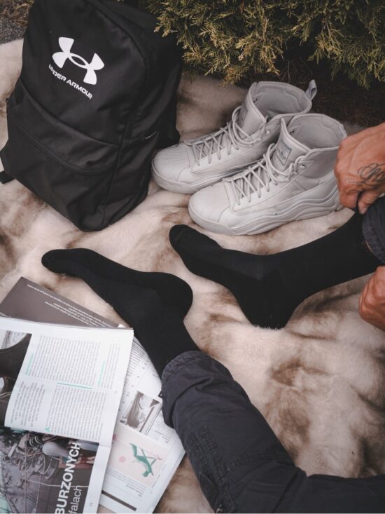 Skarpetki męskie półfrotte czarne Wełna Merino