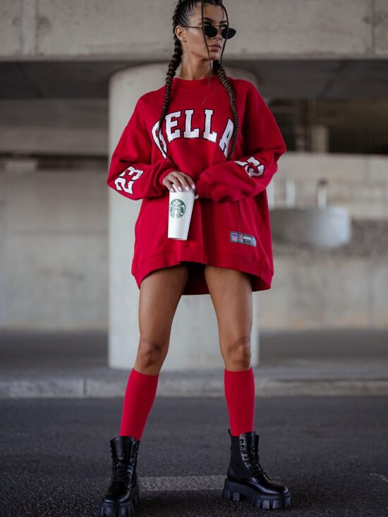 Zakolanówki ażurowe warkocz ze wstążką czerwone