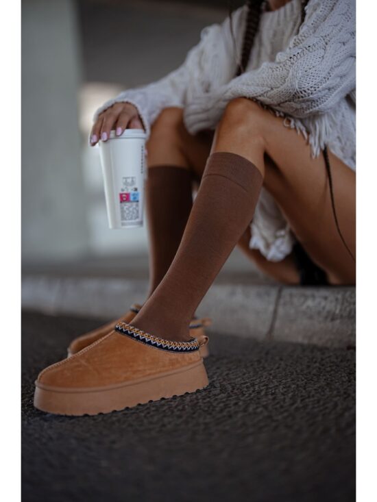 Podkolanówki bawełniane karmelowy