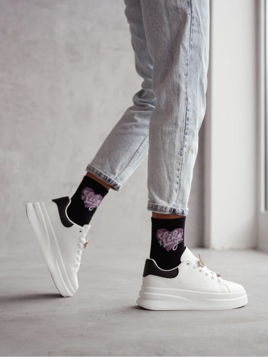 Nasze produkty charakteryzują się nie tylko niesztampowym designem, bogatym wyborem dostępnych modeli oraz szeroką paletą barw. Wyróżnia je również wysoki komfort użytkowania – są wygodne dzięki zastosowaniu doskonałej jakości materiałów, które dodatkowo pozwalają skórze oddychać. Użyta w produkcji naszych damskich skarpetek bawełna z dodatkiem elastanu i poliamidu świetnie dopasowuje się do stopy eliminując ryzyko nieprzyjemnych otarć. Pozwól, by nasze produkty skradły również Twoje serce – nie czekaj i zapoznaj się z naszą ofertą!