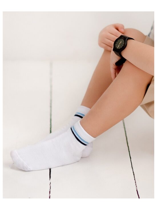 - Gładkie stopki – To krótsza wersja tradycyjnych dziecięcych skarpetek, która doskonale wygląda z szortami czy spódniczkami nie zaburzając wyglądu stylizacji. Najczęściej wybierane do obuwia sportowego, ponieważ dobrze