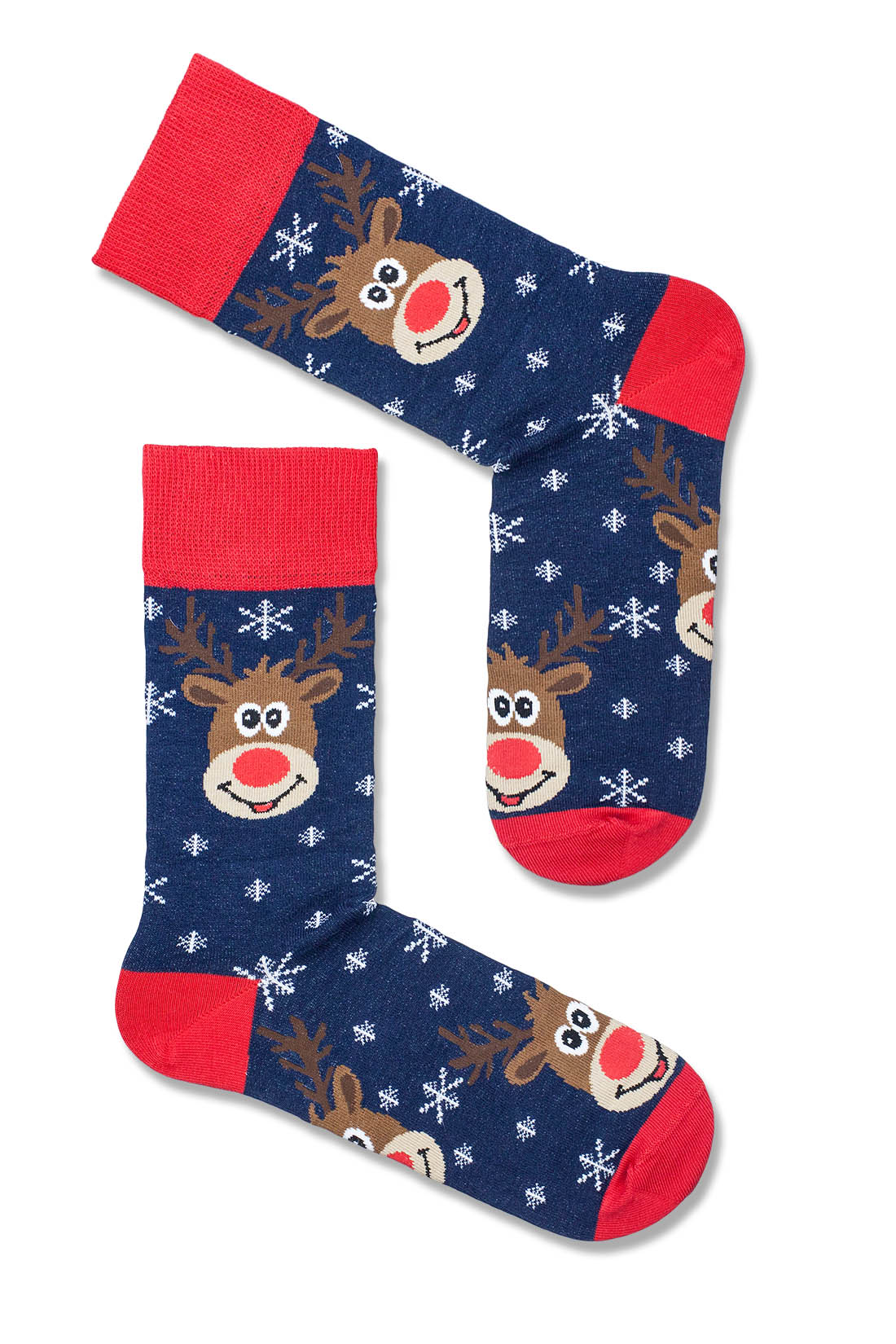 Skarpetki męskie świąteczne Głowy Renifera i płatki śniegu