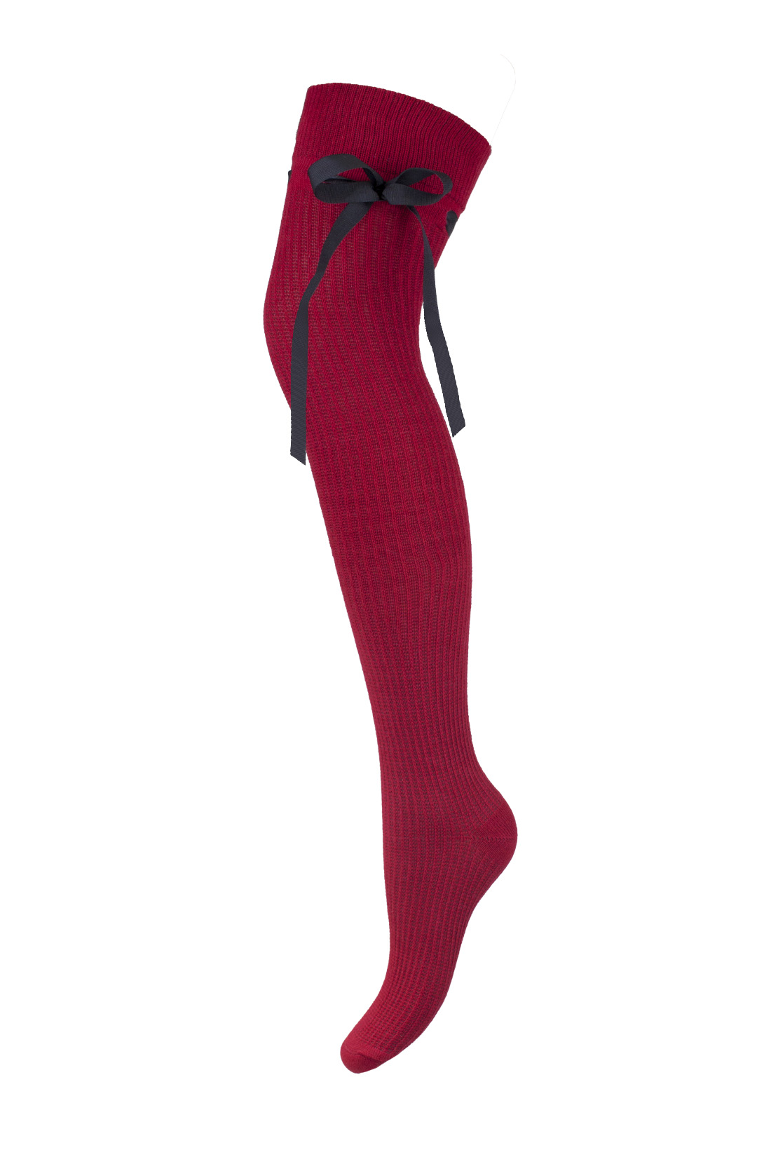 Zakolanówki w prążek ze wstążką bordowe