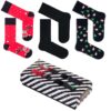 Zestaw świąteczny męski to 3 par skarpetek świątecznych męskich. Oczywiście specjalnie dla Was zapakowaliśmy je w estetyczne kartonowe pudełko z okienkiem. W zestawie znajdują się dwie pary skarpetek w wesoły, świąteczny wzór oraz jedna gładka skarpetka garniturowa. W skrócie jest to idealny pomysł na prezent dla Twoich bliskich. Jeśli chcesz dostać swój zestaw, musisz się śpieszyć!
